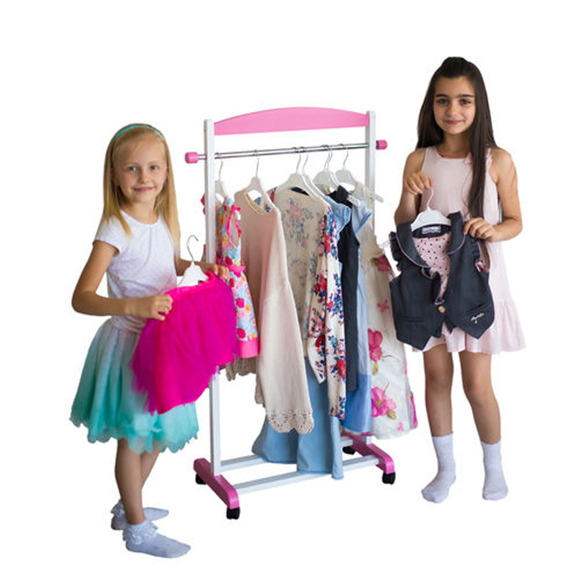 3. Всі вішаки оснащені коліщатками біля основи – це забезпечує високу мобільність та можливість переставити вішак в інше місце навіть зусиллями самої дитини.