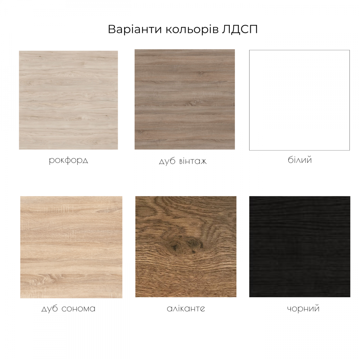 Каркас виконаний з МДФ або ДСП, покритий декоративною плівкою під натуральне дерево. Додаткова металева поличка дозволяє зручно зберігати до 4–6 пар взуття.