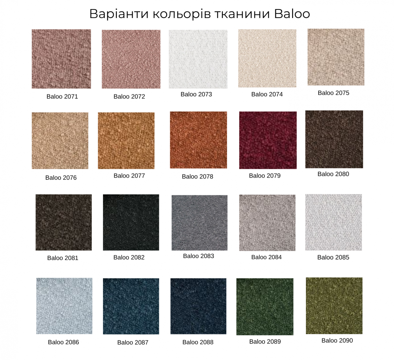 Сидіння оббите тканиною букле — трендовим матеріалом, який не тільки приємний на дотик, а й додає об’єму та глибини формі. Завдяки рельєфній текстурі, банкетка виглядає сучасно, але водночас м’яко вписується в будь-який інтер’єр.