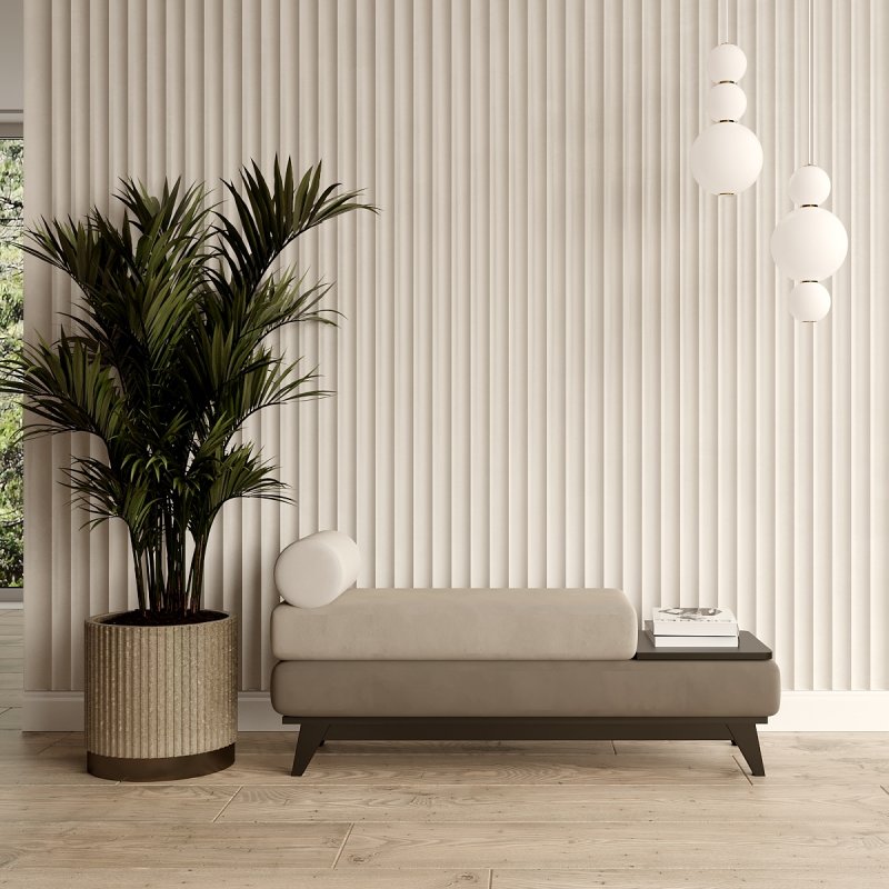 Ця банкетка — втілення мінімалізму та витонченого смаку. Завдяки лаконічним формам, м’яким лініям і продуманому кольоровому поєднанню вона ідеально доповнить будь-який сучасний інтер’єр. Високоякісна оббивка з велюру додає виробу елегантності та приємної текстури, а основа з дерева та ЛДСП забезпечує міцність і довговічність.