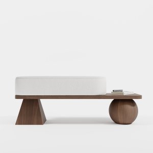 Банкетка виготовлена з МДФ, покритого шпоном дуба або американського горіха та оббивки Baloo. М’яке сидіння забезпечує комфорт навіть при тривалому використанні. А стійка конструкція гарантує надійність та довговічність. Банкетка може використовуватись як місце для відпочинку або стильний декор у вітальню, передпокій чи спальню. Контраст геометричних форм робить її унікальним акцентом у будь-якій кімнаті.