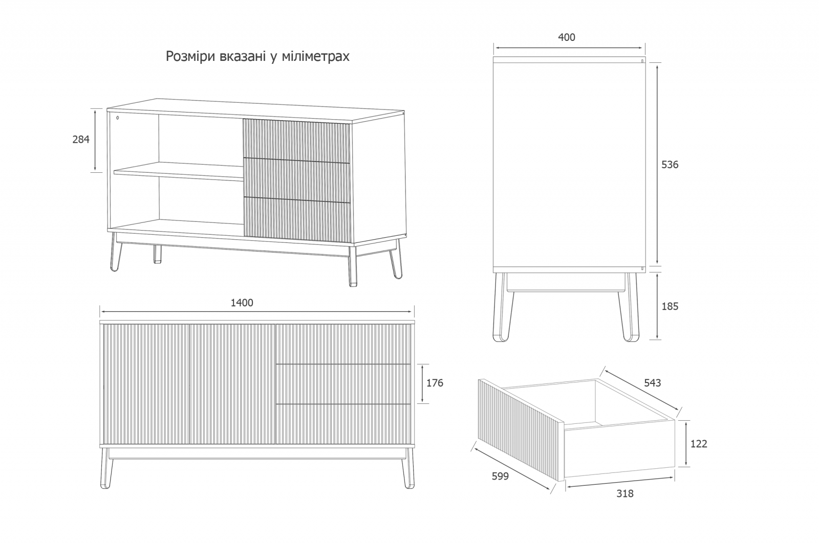 Три висувні ящики та дві полиці всередині комоду досить глибокі (40 см), щоб зберігати в них одяг, постільну білизну, предмети туалету. Таким чином, за рахунок кількості та різноманітної внутрішньої організації Вам буде простіше структурувати характерні речі.