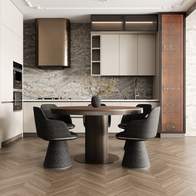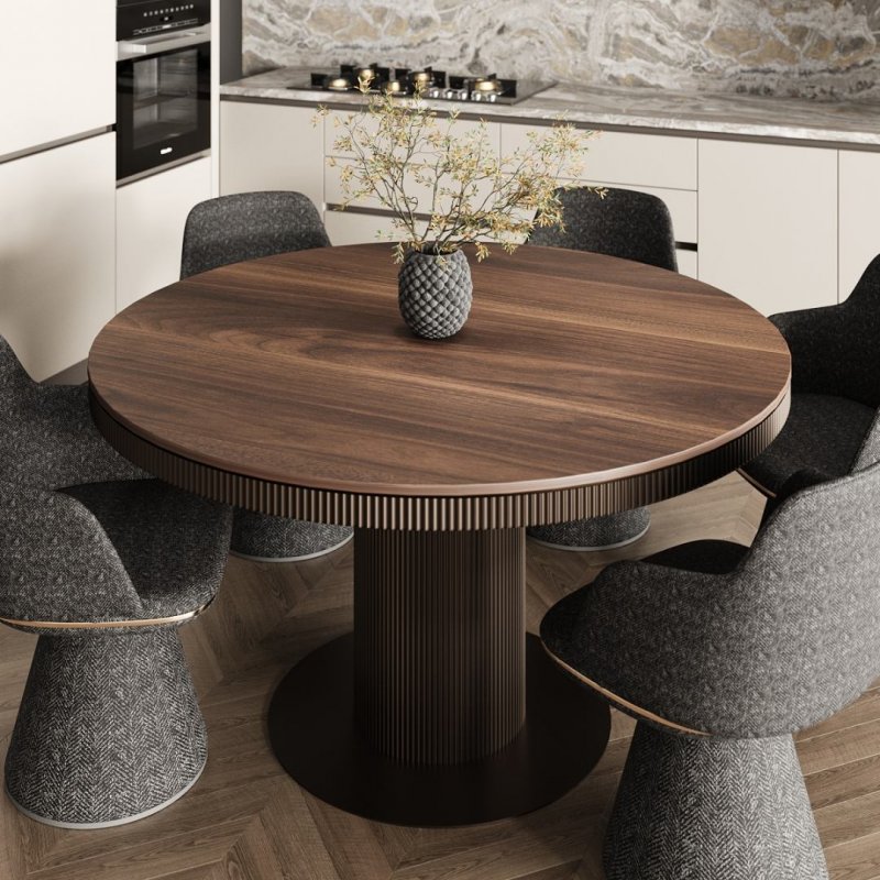 Круглий стіл завжди асоціюється з гармонією, рівновагою та єдністю, саме тому він ідеально підходить для дружніх зустрічей та сімейних вечорів – кожен почувається рівноправним, а атмосфера за таким столом стає ще теплішою.