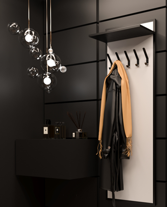 Наш комплект меблів для передпокою включає три основні елементи, незамінні в домашньому побуті. Вішак настінний Міранда 2 - компактна і зручна модель, виконана з ламінованої ДСП товщиною 16 мм. Вішак має полицю для аксесуарів та п'ять надійних металевих гачків для верхнього одягу. Рамка і гачки контрастного чорного кольору, що надає виробу певної брутальності. Габаритні розміри вішалки становлять (В/Ш/Г): 1480х500 х236 мм.