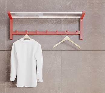 Місткий настінний вішак "NVD-02" також дерев'яний, має сім міцних гачків для одягу та полицю для головних уборів. Полиці та гачки металеві, виготовлені з хромованої труби. Габарити вішака (В/Ш/Г): 320х1000х250 мм.