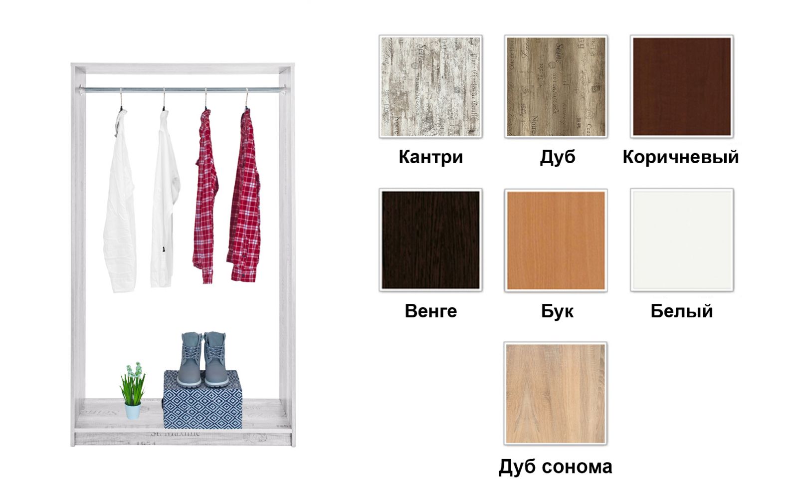 Увидела такой открытый шкаф у подруги и очень захотела себе. Купила в цвете "кантри". У него такая интересная текстура, очень стильно смотрится, да и практично - не видно пыли)) Относительно качества могу уверенно сказать, что вещь добротная, крепкая, аккуратно сделана. Благодарность магазину за приятную покупку!2018-02-09 17:12:47