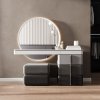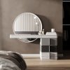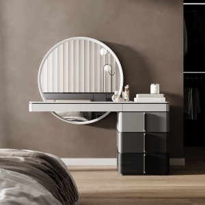 Велике кругле дзеркало діаметром 1 м додасть світла та простору в кімнаті, а процес нанесення макіяжу та створення зачіски зробить максимально комфортним та приємним. В чотирьох шухлядах вистачить місця для усіх маленьких дрібничок повсякденного використання, косметики та інших важливих речей.