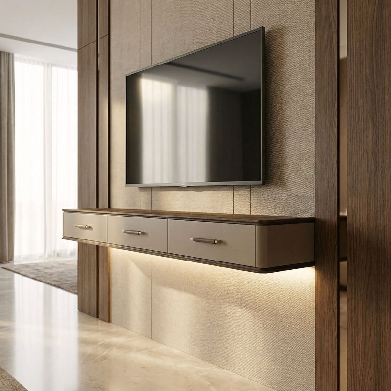 Кожен елемент тумби продуманий до дрібниць: чітка геометрія, якісна фурнітура та бездоганне виконання. Лаконічний силует, горизонтальні лінії та збалансовані пропорції роблять тумбу ідеальним рішенням для сучасних інтер’єрів. Вона органічно поєднується з великою плазмою, створюючи стильну та візуально легку зону.