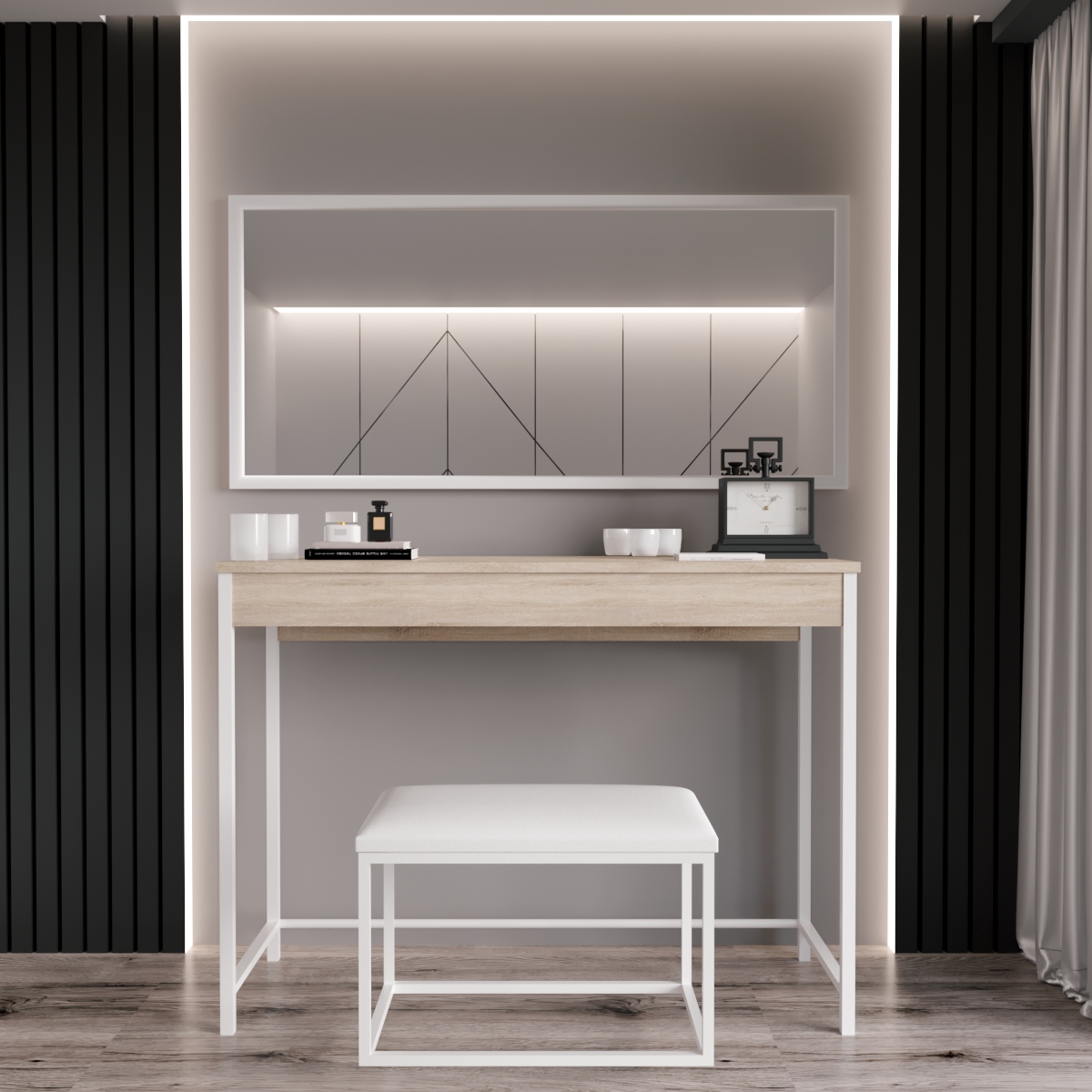 Матеріал рами виготовлений з якісного МДФ, що надає виробу натуральності та універсальності. Дзеркало в спальню від виробника «Fenster» поєднало в собі улюблений класичний дизайн з більш сучасним. Виріб представлений у двох універсальних кольорах: чорному та білому. Цей важливий елемент будинку надає кімнаті природного освітлення, а вам – настрій та життєву енергію. Перевагою установки в кімнаті дзеркала є також те, що дзеркало не створює необхідності меблів тим чи іншим чином відповідати його зовнішньому вигляду. Тому ви можете сміливо експериментувати зі стилями та дизайном.