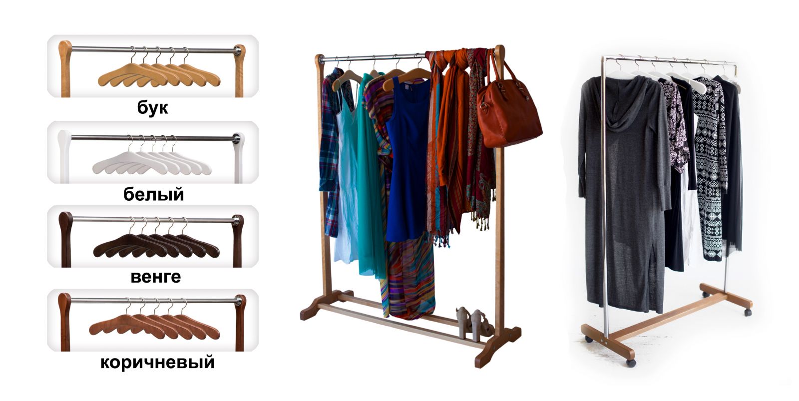 В зависимости от выбранного Вами стиля у нас Вы найдёте стойки из дерева, стойки передвижные на колёсиках, вешалки металлические с полками для обуви. А также различимые по типу: одинарная вешалка и двойная. Все вешалки очень компактные и являются разборными изделиями. Поставляются в разобранном виде в фабричной упаковке с инструкцией и всеми необходимыми для сборки материалами. Сборка вешалки занимает всего несколько минут. Это очень удобно и практично.