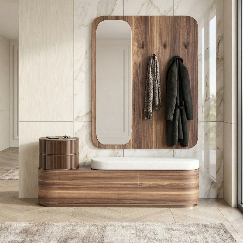 МДФ, покрытое шпоном дуба или американского ореха, металл, МДФ