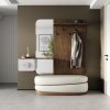 Зеркало, интегрированное в конструкцию, визуально расширяет пространство и делает прихожую светлее. Оно выглядит лаконично и не нарушает целостность дизайна.