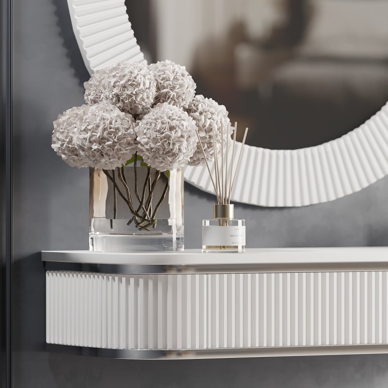 Оптимальный диаметр зеркала придает четкое и широкое отображение. Важным преимуществом является то, что большие зеркала зрительно увеличивают комнату, придавая ей глубины. А круглая форма всегда привлекательно подчеркивает любой интерьер. Выдвижной ящик поможет в аккуратном хранении повседневных мелочей и поддержании порядка. Столешница изделия гармонично разместит предметы декорирования.