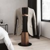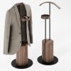 Корпус изготовлен из высококачественного шпонированного МДФ, обеспечивающего теплое чувство натурального дерева. Надежное прочное основание делает конструкцию устойчивой, благодаря чему изделие не шатается и сохраняет свой вид долгие годы. Две вертикальные металлические опоры держат перекладину для пиджака или рубашки и круглую нишу для размещения часов, запонок, ключей или телефона. Изделие имеет компактные размеры, идеально подходит как для больших помещений, так и маленьких пространств. Станет отличным дополнением спальни, гардероба, офиса или гостиничного номера.