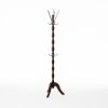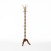 Кованные металлические рожки окрашены порошковым методом. На них нанесен эффект патины золотистой краской. За счет этого деревянная напольная вешалка имеет благородный внешний вид, очень удобна и надежна в эксплуатации.