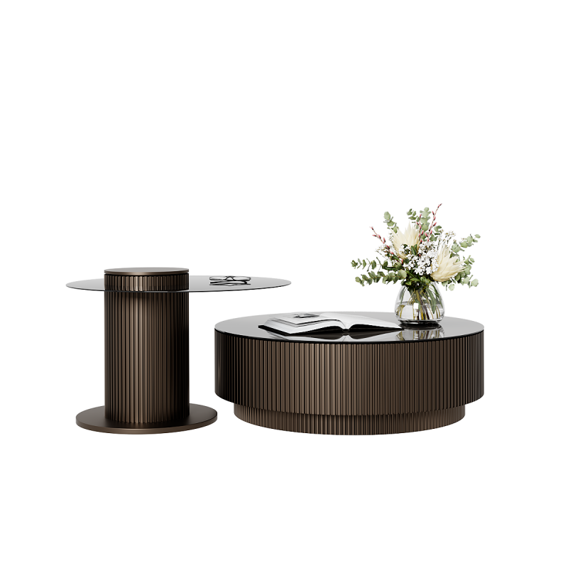 Основание столика изготовлено из качественного МДФ, что обеспечивает стабильность конструкции. Ножка из фрезерованного МДФ добавляет глубины, а стеклянная столешница – легкости, при этом выдерживая ежедневную нагрузку. Такое сочетание создает гармоничный баланс, благодаря чему столик выглядит изящно, оставаясь надежным и функциональным.
