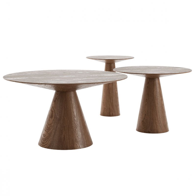 Дизайн столиков удивляет своей лаконичностью и гармонией, благодаря чему они легко вписываются в любой стиль помещения. МДФ, покрытое шпоном дуба или американского ореха придает мебели теплоту и благородный вид. Насыщенный цвет столиков подчеркивает текстуру материала, делая их настоящим украшением интерьера.